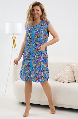 Халат женский домашний бязевый на молнии без рукава от компании Лето-Текс,выполнен из натурального хлопчатобумажного материала из бязи - 100% хлопок. Длина халата выше колена, карманы накладные. Достоинствами такого халата являются его экологичность и безопасность, он не вызывает аллергии, кожа в нем дышит, а влага впитывается. Отлично подойдет в качестве одежды для дома, надеть с утра или после ванны, не сковывает движений и свободно сидит по фигуре. Халат летний женский короткий безрукавный подойдет для роддома, для кормления грудью, для кормящих мам.