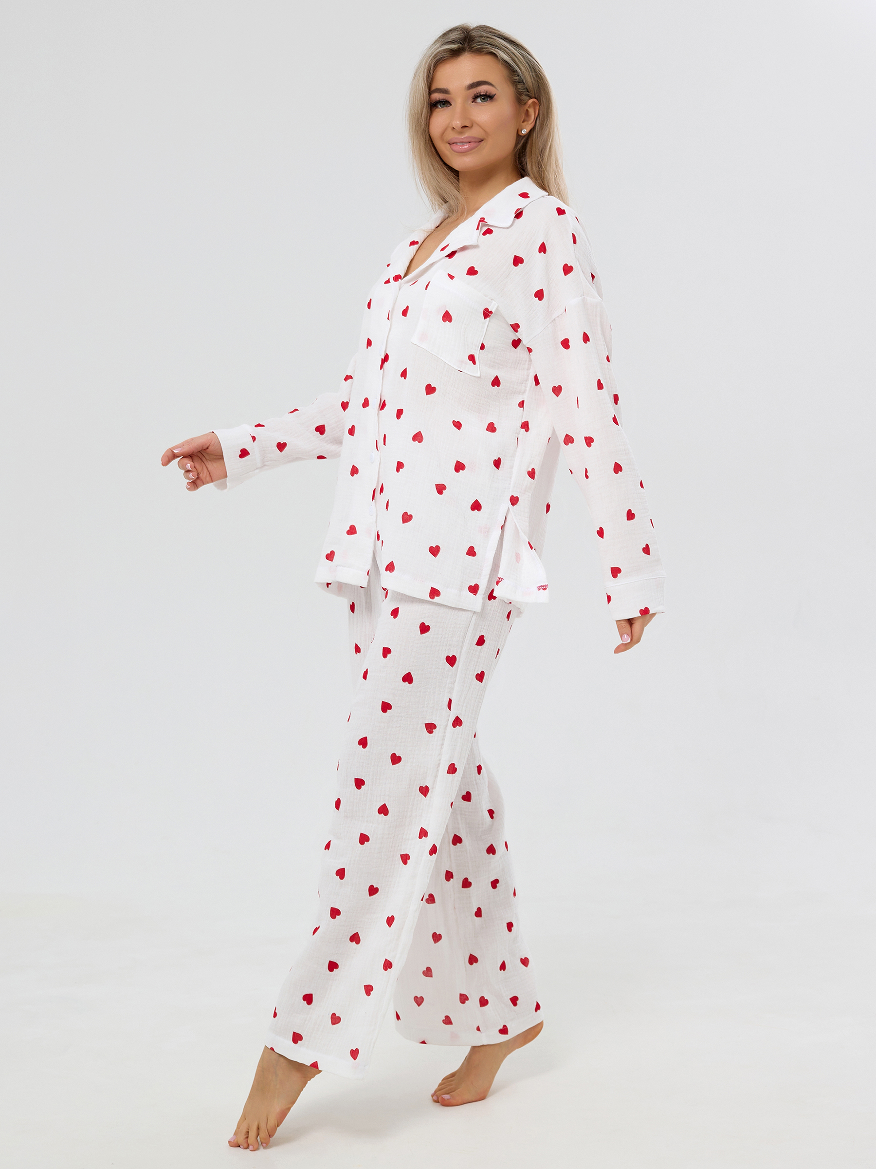 РАСЦВЕТКА КАК НА ФОТО Пижама женская со штанами. Выполнена из мягкого материала муслин, 100 % хлопок. Пижамный комплект мягкий и приятный к телу.
