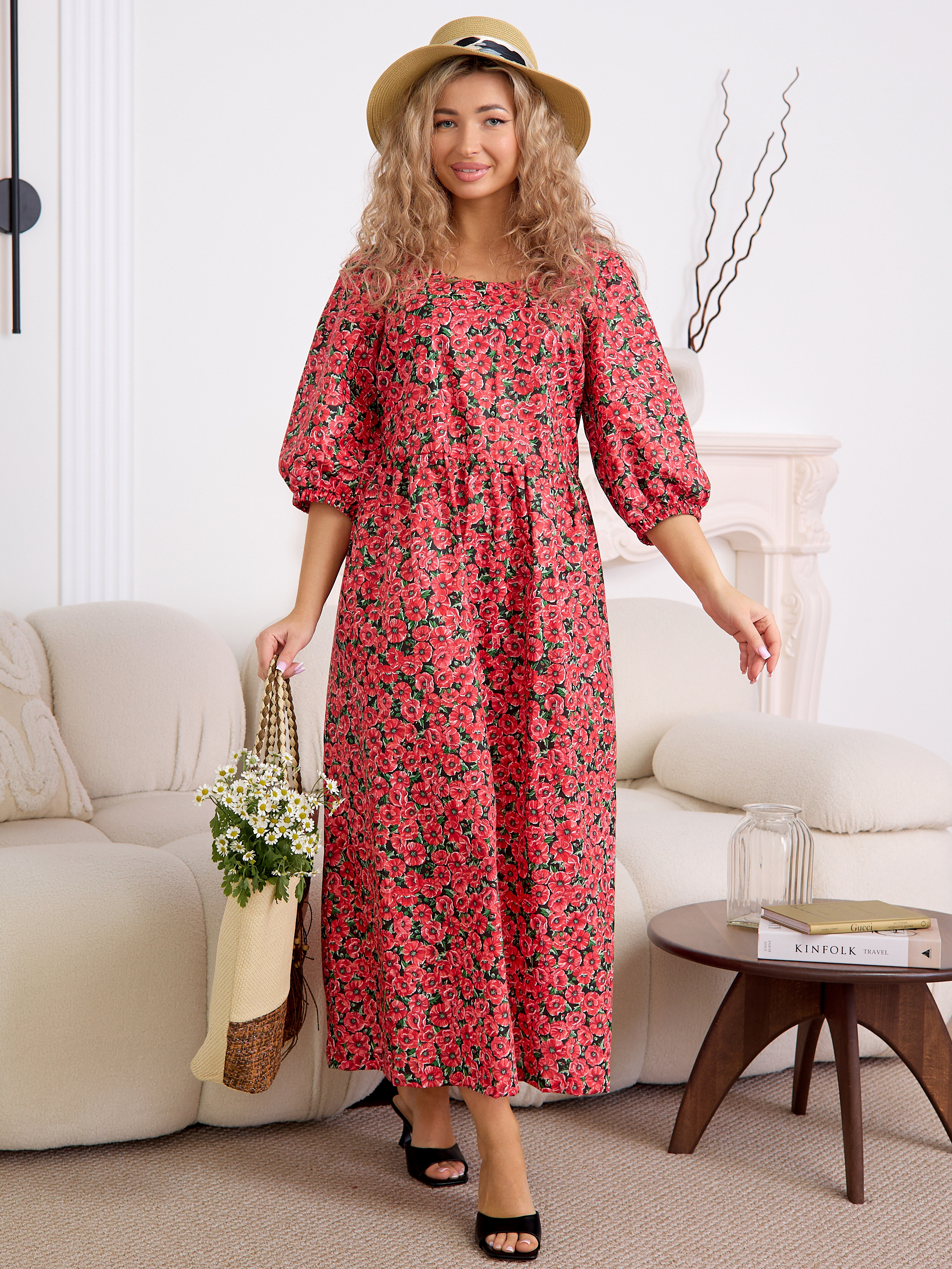Рукав 3/4 с резинкой внизу — практичная и стильная деталь, которая завершает образ в духе «платья-крестьянки».